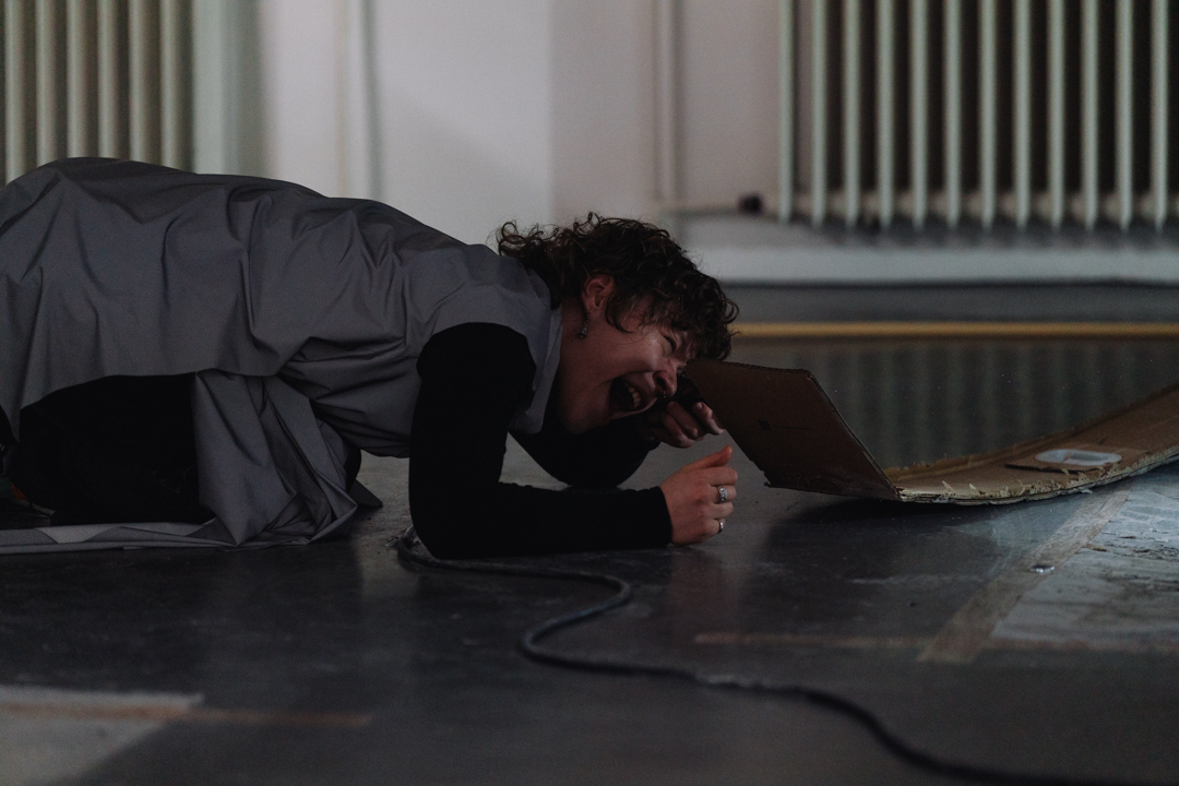 The piece was a sonic response to Jabu Arnell’s "Turn off the Lights, Disco Ball #13: A Kind of Black". Properties of light are used to activate bodies and voices as they relate to liminal spaces in the city. In line with Jabu's creative process, the performance evolves experimentally, in an interplay between the space, language and sound.
